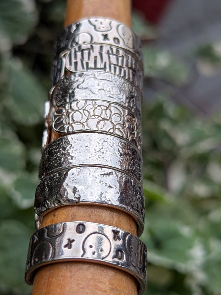 Hammered Texture Chunky 925 Silver Ring. Adjustable UK size N to R