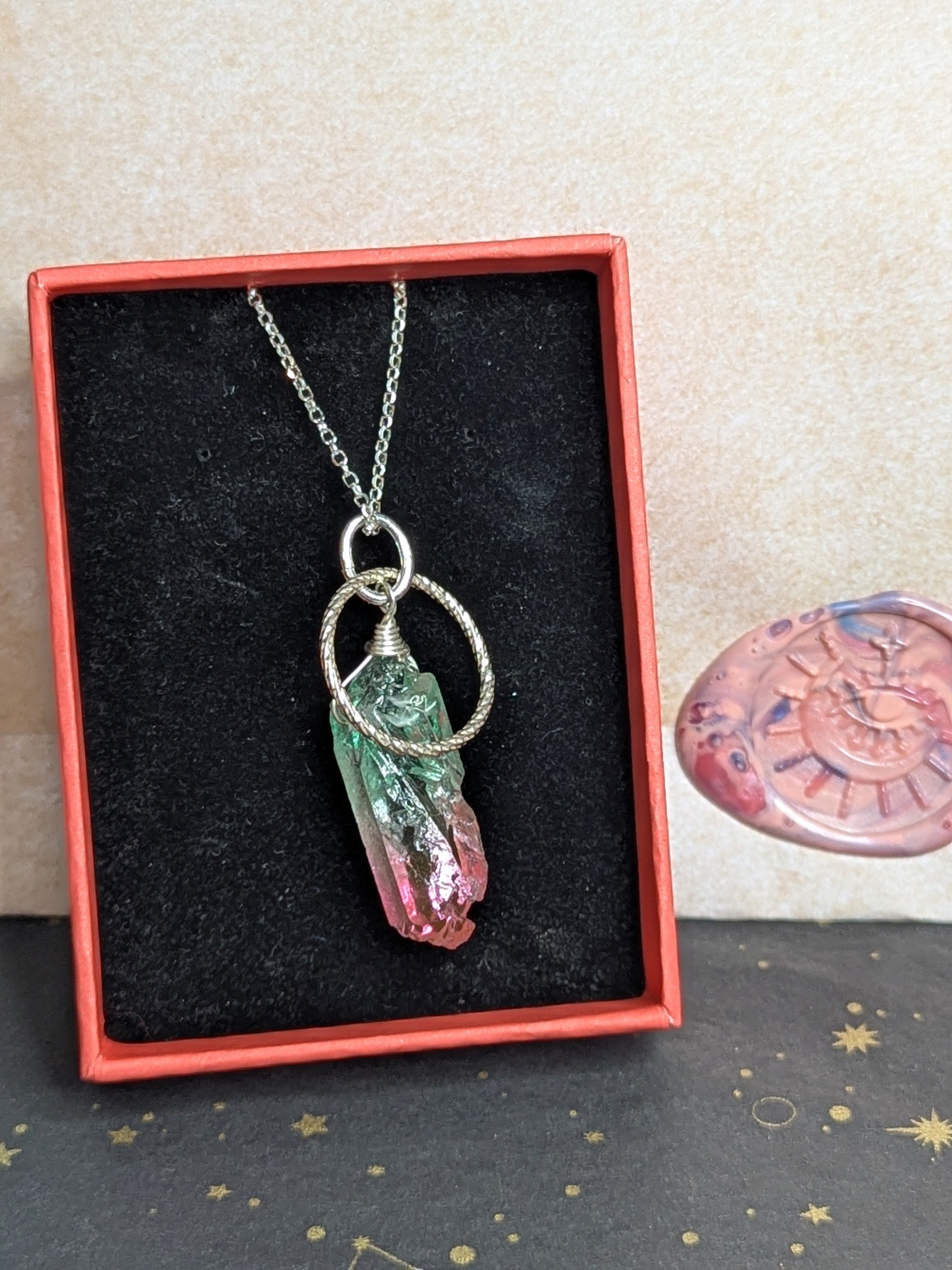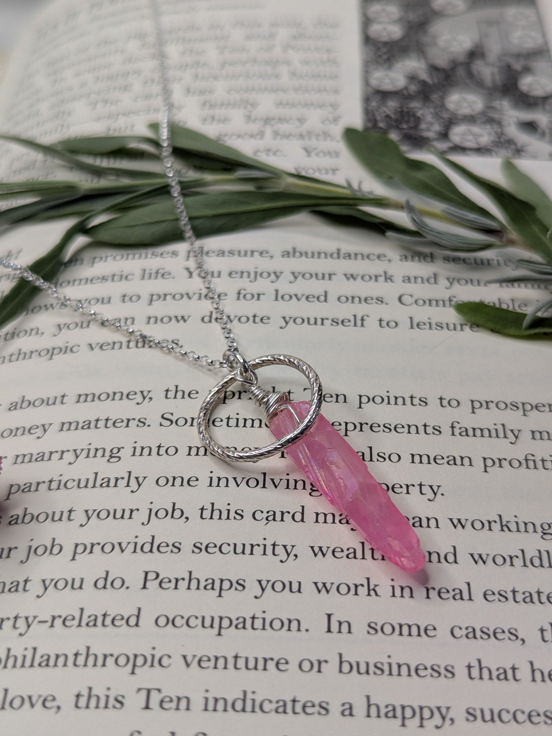 Watermelon Quartz Sterling Silver Necklace — opens the heart to compassion, joy, and emotional balance.