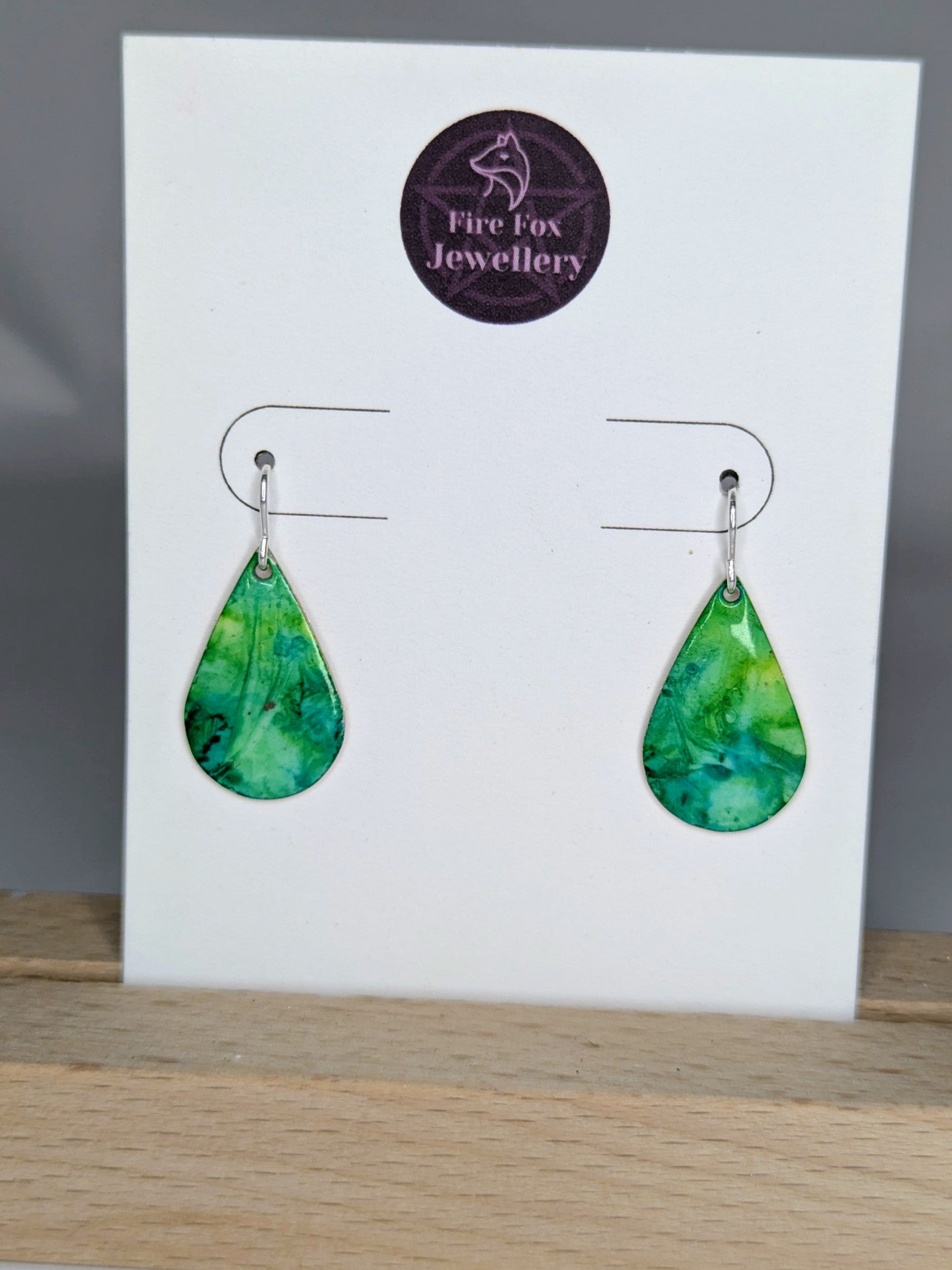 Green Enamel Earrings – Three Fire Fox Studios designs to choose from, each representing luck, renewal, and steady progress