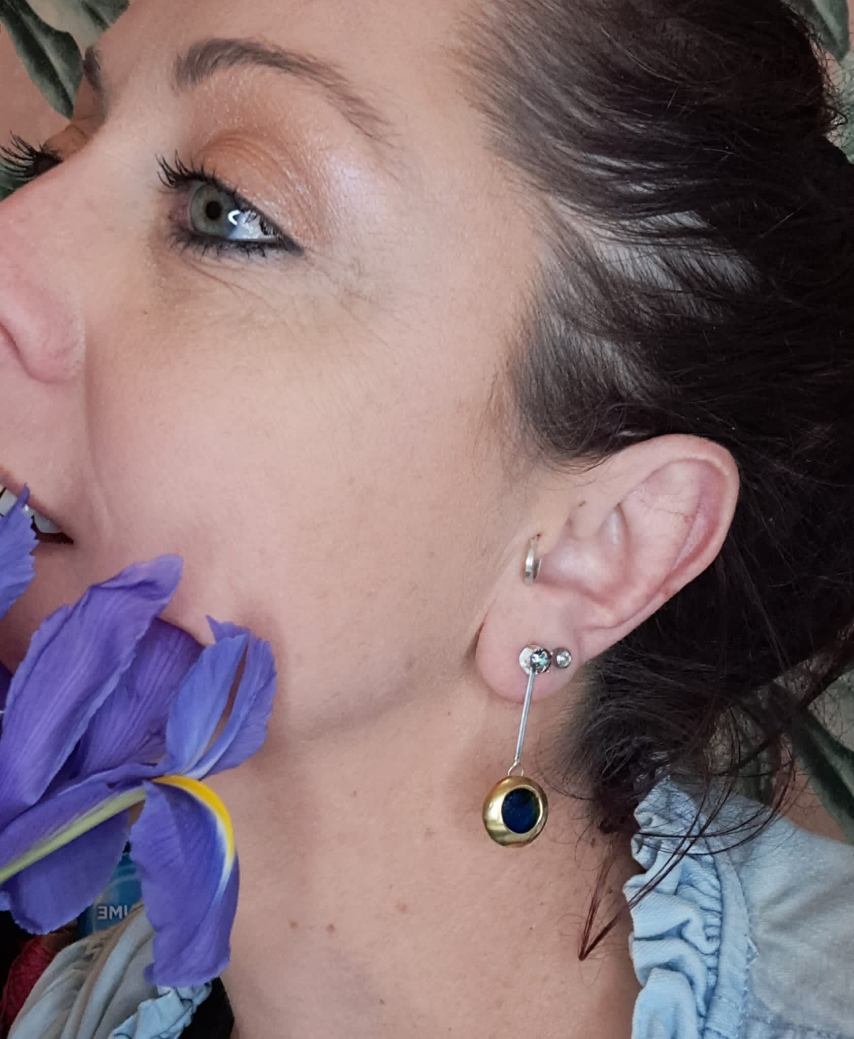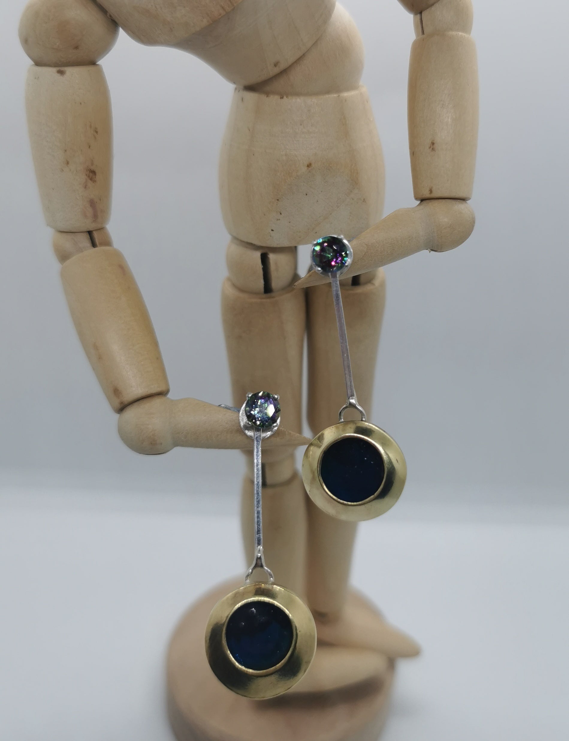 Silver and Brass Earrings with Mystic Fire Topaz.