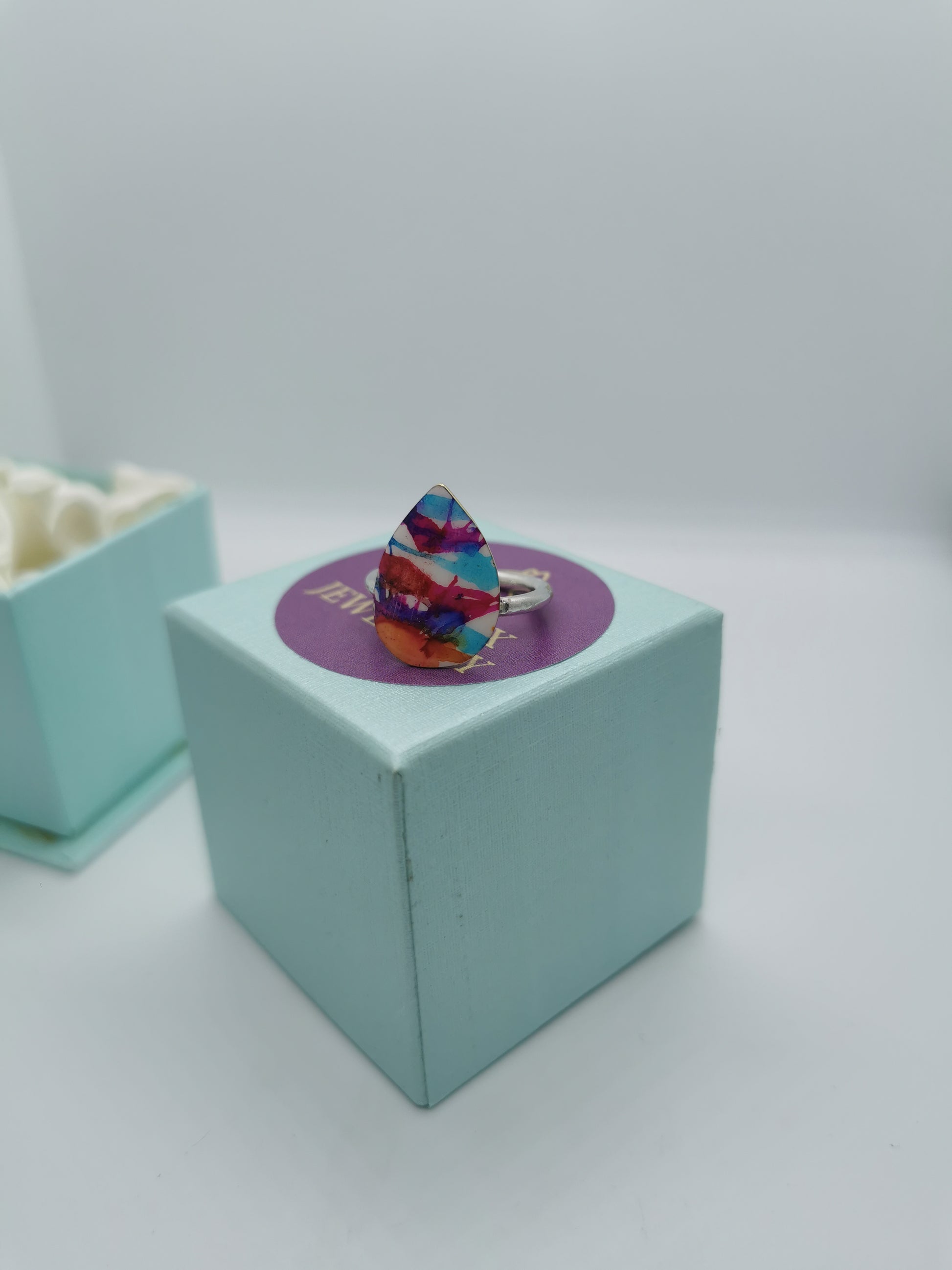 Hot Pink, Forget-Me-Not Blue and Sweet Plum Tear Drop Silver Ring