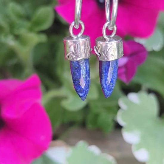 Lapis Lazuli Bullet Crystal Earrings — Sterling Silver Hoops for Truth & Inner Wisdom