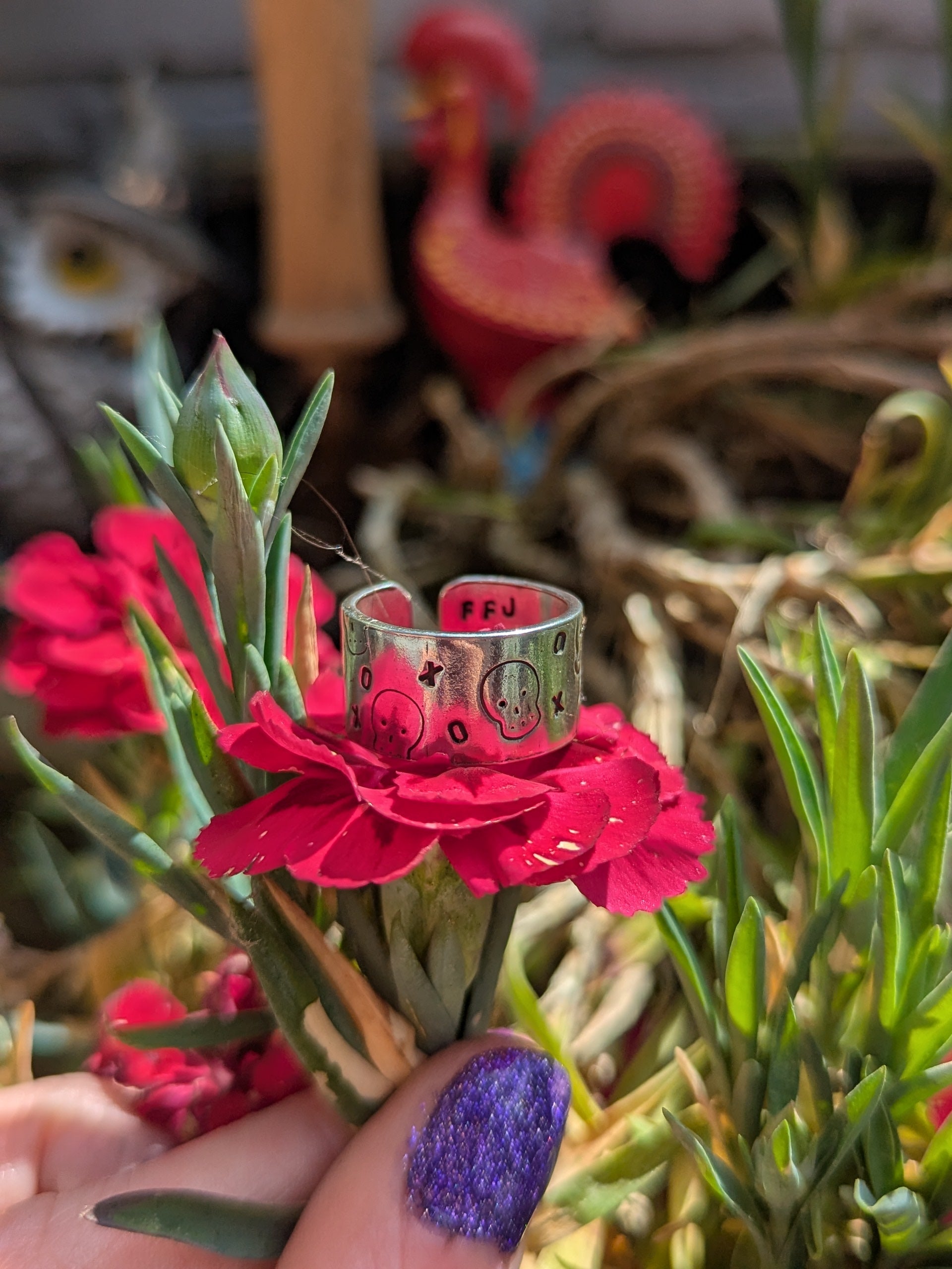 Whether you're cloaked in velvet or denim, this ring adds a haunting elegance to any ensemble.