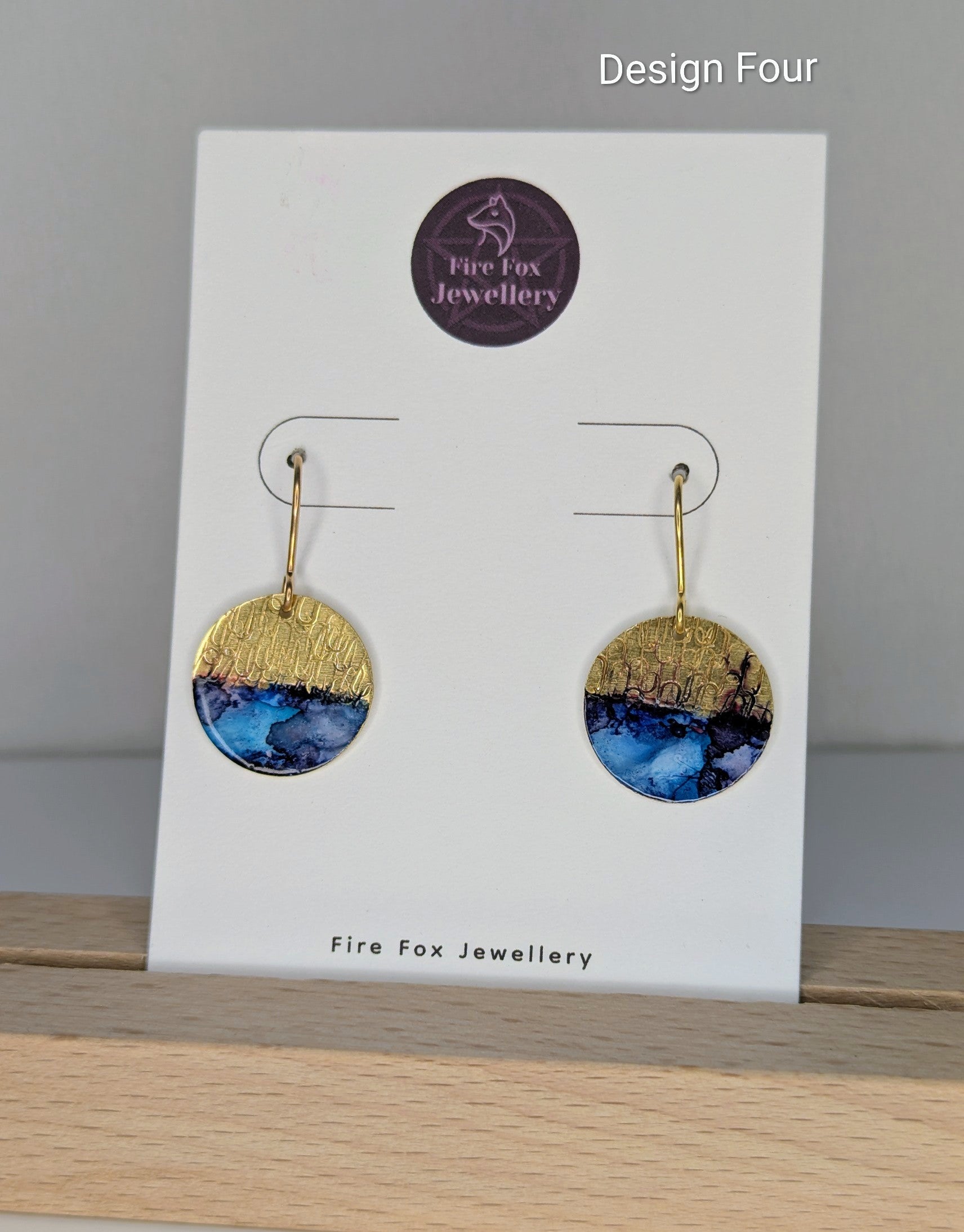These colourful earrings are handcrafted to blend bold enamel with raw, hammered brass — capturing that magical moment where day meets dusk. The one half glows with smooth, vibrant enamel, while the other half features hand-textured brass that catches the light like sunlit waves.